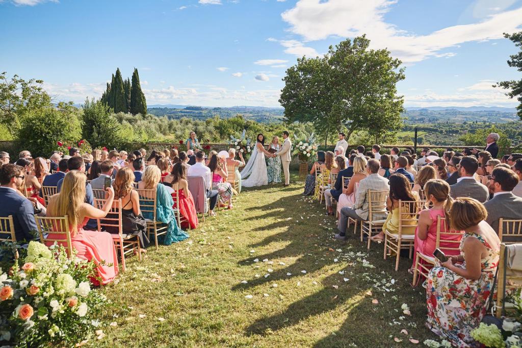 In the picturesque Chianti countryside, Sara and Justin celebrated their wedding at Fattoria di Catignano. Preludio Catering handled the arrangements and catering, from the welcome dinner with a pizza party to the wedding reception. Discover the images of this unforgettable event.
